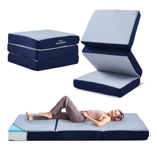 MKS Fällbar madrass, gästmadrass, 3-delad vikbar madrass, 15 cm tjock, vikbar, vuxna (blå, 75 x 65 x 45 cm)