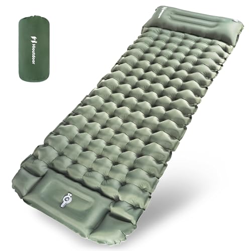Hioutdoor liggunderlag 10 cm camping ultralätt uppblåsbar med fotpress pump för utomhus vandring strand backpacking tält madrass sovmatta campingmatta (grön)