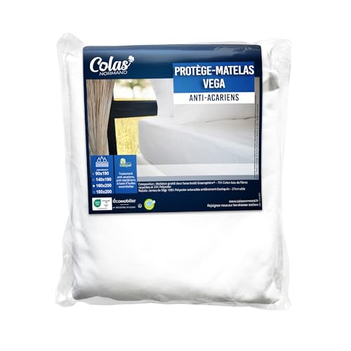 Colas Normand Vega Fleece absorberande madrasskydd 160 x 200 cm – återvunnen bomull och återvunnen polyester – Greensfère anti-kvalster och antibakteriell – mjuk och slitstark – mössa 27 cm