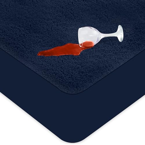 Utopia Bedding Vattentätt Madrasskydd 160 x 200 x 30 cm, Oeko-Tex-Certifierad, Andningsbar Madrassöverdrag, Elastisk Runtom (Marinblå)