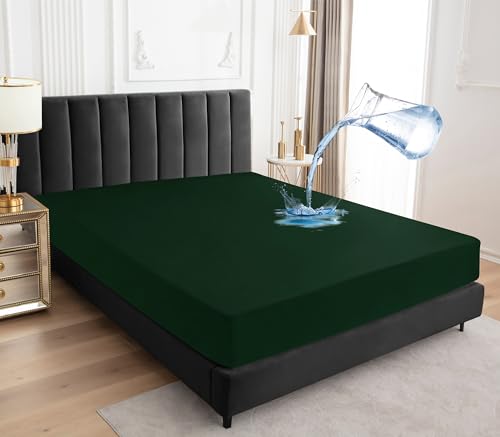 Sufdari Vattentätt madrasskydd 200 x 200 cm dra-på-lakan, ventilerande madrasskydd vattensäkert madrasskydd våtskydd spännlakan - grön