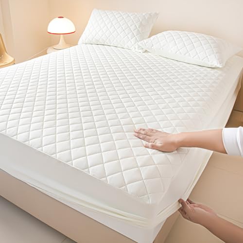JIANINGHOME Dra-på-lakan, 200 x 200 + 25 cm, quiltat vattentätt madrasskydd med elastisk, TPU-filmskydd