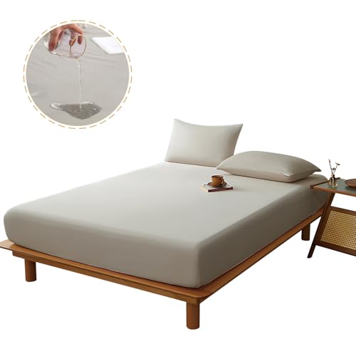 Vattentätt madrasskydd, 200 x 200 cm, dra-på-lakan, ventilerande madrasskydd, skydd, våtskydd, formsydda sänglakan-Grå