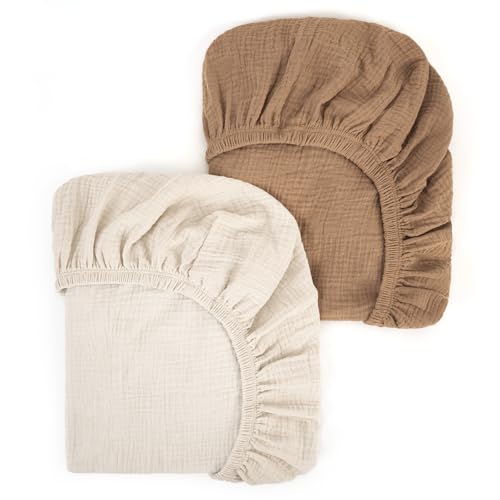Peepeemax Musselin-bomull spännlakan för pojkar och flickor, barnvagn spännlakan stuvvagn madrasskydd för mosekorg, babysäng och sidosäng 80 x 40 cm, 2-pack (Ljusbrun)