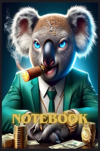 Notebook: With a wide line, with the Koala Mafia Boss design, for boys, children, students, teenagers, for back to school, home and college.