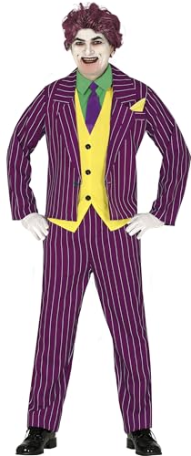 FIESTAS GUIRCA Killer Jester Mens Fancy Dress Costume - Purple Striped Mafia Boss Suit - Comic Villain Fancy Dress Män Storlek XL 56-58