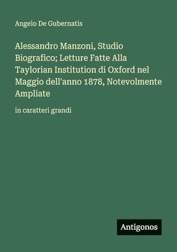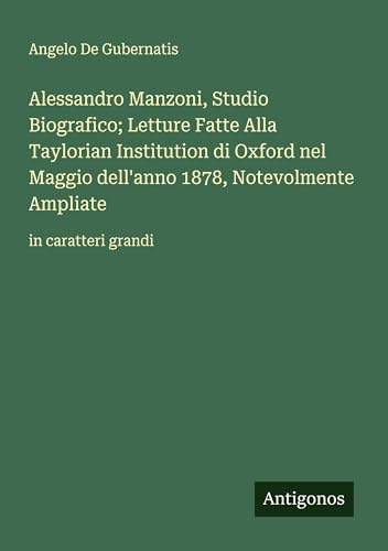 Alessandro Manzoni, Studio Biografico; Letture Fatte Alla Taylorian Institution di Oxford nel Maggio dell'anno 1878, Notevolmente Ampliate: in caratteri grandi