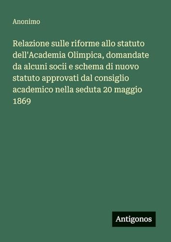 Relazione sulle riforme allo statuto dell'Academia Olimpica, domandate da alcuni socii e schema di nuovo statuto approvati dal consiglio academico nella seduta 20 maggio 1869