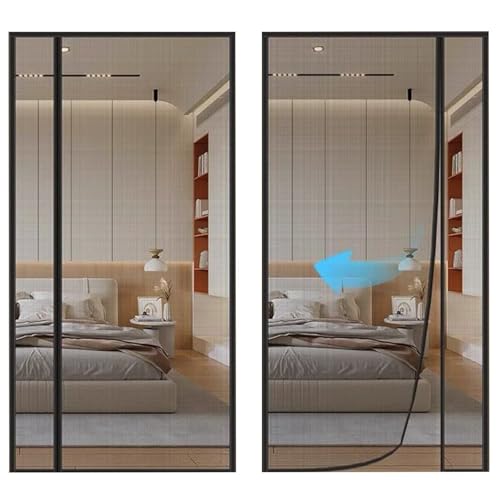 Fly Screen for Doors, 95x225cm Magnetic Bug Mesh Curtain with Powerful Magnets Seal, Polyester Mesh, Full Frame Magic Tape, Insect Protection Door No Gap,Patio Mosquito Screens, Black