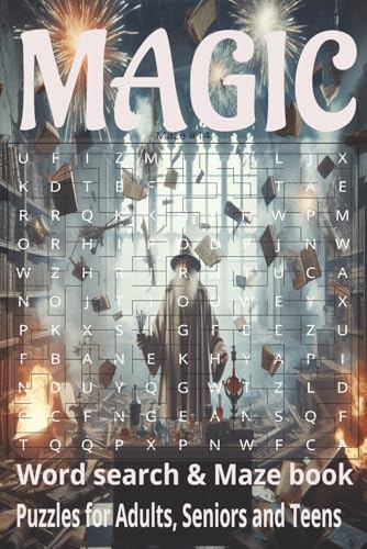 "MAGIC: Themed word search and Maze book.: Book is 6 X 9 inches,110 pages with 55 Puzzles and 495 words with mostly easy to read print and 55 Mazes. ... vertically, diagonally, forward, or backward.