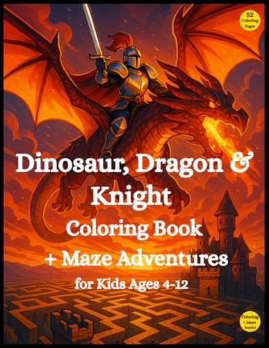Dinosaur, Dragon & Knight Coloring and Maze Adventure (Ages 4–12): An Epic Coloring Book Full of Battles, Magic, and Mazes — Perfect for Kids Who Love Fantasy and Adventure!