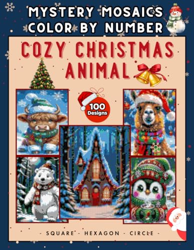 Mystery Mosaics Color by Number: Cozy Christmas Animals: 100 Festive Designs of Cute Winter Pets, Snowy Scenes, and Holiday Magic for Adults and Teens