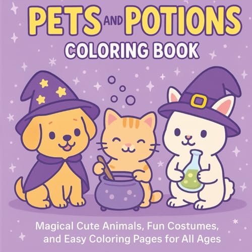 Pets And Potions: Adorable Animals, Enchanted Rooms, and Whimsical Magic Coloring Book