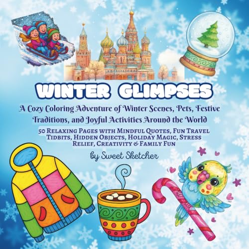 Winter Glimpses: A Cozy Coloring Adventure of Winter Scenes, Pets, Festive Traditions, and Joyful Activities Around the World: 50 Relaxing Pages with ... Magic, Stress Relief, Creativity & Family Fun