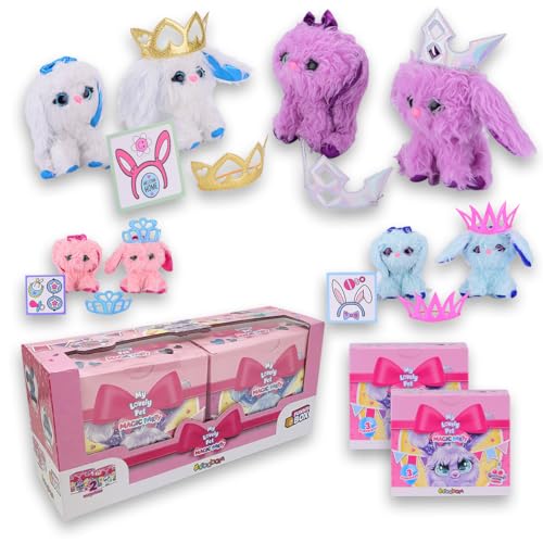 Sbabam FUNNY BOX Lovely Pets Magic Party, mjuka plyschdjur med medföljande tillbehör, 2 st, leksaksdjur för barn, leksaker för barn och tidningskiosker, tvättleksaker, torkning, kamning