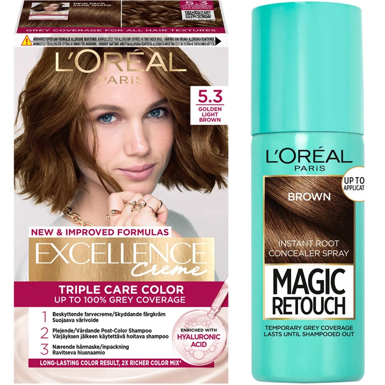 L'Oréal Paris Excellence Excellence 5.3 Golden Light Brown + Magic Retouch Roots 3 Brown