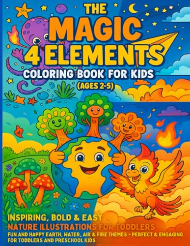 The Magic 4 Elements Coloring Book For Kids (ages 2-5): Inspiring, Bold & Easy Nature Illustrations For Toddlers - Fun and Happy Earth, Water, Air & ... & Engaging For Toddlers And Preschool Kids