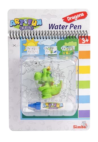 Simba Art & Fun Water Pen Drake – Målarbok med vattenpensel och 4 magiska sidor (17 x 19 cm), inkl. 6 cm drakfigur, återanvändbar magisk målarbok för barn från 3 år
