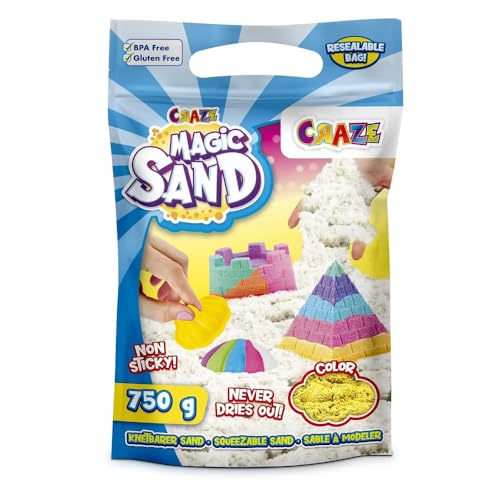 Craze Magic Sandd gul refill-pack, kinesisk sand, 750 g, påfyllningspaket, färgglad, magisk sand, lersand för pysselset, barn, trollerisand, 33579