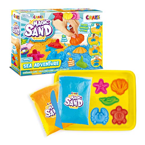 Craze Magic SAND Sea Adventures | Kinetiskt sandset 600 g färgglad magisk sand i 2 färger med formar och fodral, kreativt set för barn