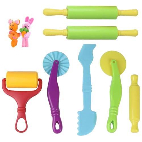 Vimmvid 7-delat lertillbehörsset, lerset för barnlera från 2 år, knådningstillbehör för barnlera, magisk sand, modelleringstillbehör (färgglad)