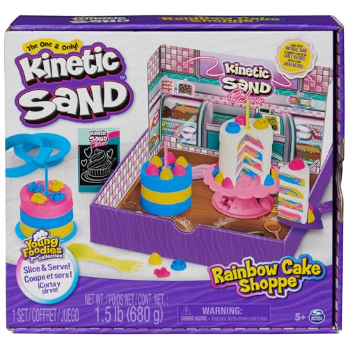 Kinetic Sand Magisk sand - Rainbow Cake SHOPPE, 680 g gul, rosa, blå och vit vaniljdoft, pysselsats för barn, sensoriska leksaker, 6068029, leksaker för barn 5 år +