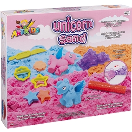Craze MAGIC SAND Unicorn Set | Kinetisk sand med glitter 600 g, pysselset barn med knådning och enhörningsformer, trefärgad enhörning magisk sand