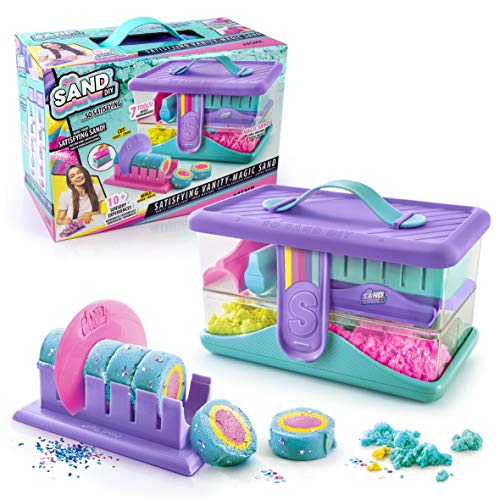 So Sand gör-det-själv tillfredsställande magiska sandfodral, 7 roliga verktyg, bär- och förvaringsfodral med lekbricka Inc! Gör färgglad magisk sand från repan!