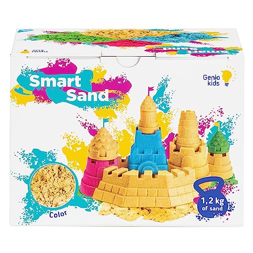 Genio Kids Smart Sand Castle Set - 1 kg Magisk Sand, 4 Tillbehör till Slottsformar i Sandlera - Leksand För Inomhus, Magiska Lersandpresenter för Barn, Flickor och Pojkar