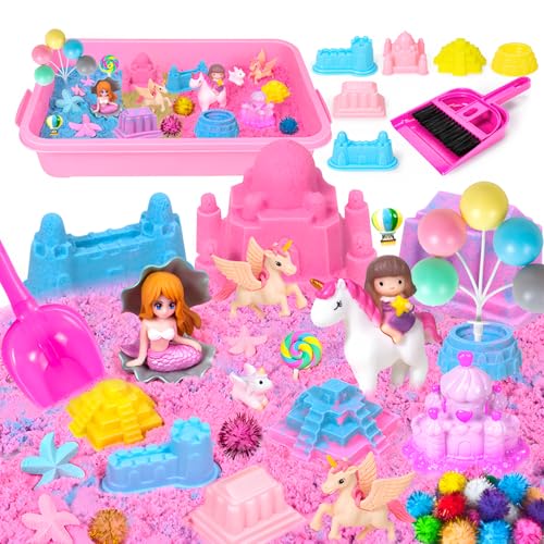 BARVERE Knådsandsset för barn, 38 st leksandset, 1,3 kg knådande and med leksandslåda, enhörning magisk magisk sand fodral, pysselset barn, färgglad kinetik för flickor och pojkar