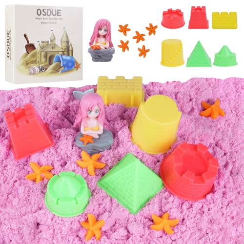 OSDUE Magisk sand-serie slott, magisk sand sjöjungfruslott stjärna sjöformar med 480 g magiska sandiga rosa kit gör-det-själv-sensoriska leksaker födelsedagspresenter för flickor, 13 st