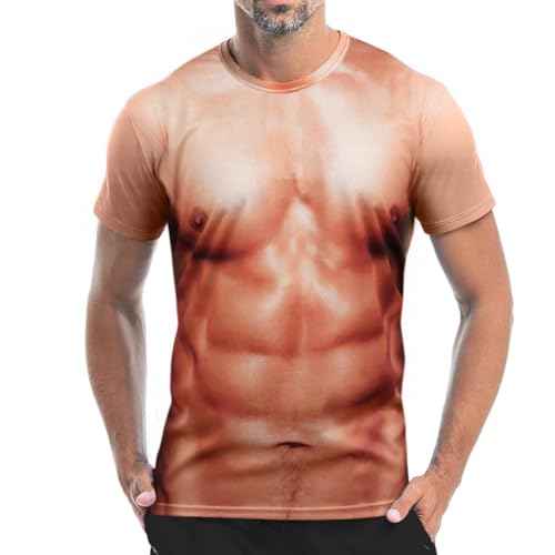 AYBUY Rolig T-shirt med 3D-muskler, tryck muskulöst 3D-mönster T-shirt kortärmade toppar, rund hals magmuskler T-shirt för män, Brons, L