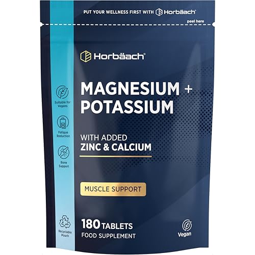 Magnesium Kalium med Zink och Kalcium | 180 Veganska Tabletter | + 6 Månaders Förbrukning | Magnesium Complex med Järn, Vitamin B12 och Vitamin B6 | av Horbaach