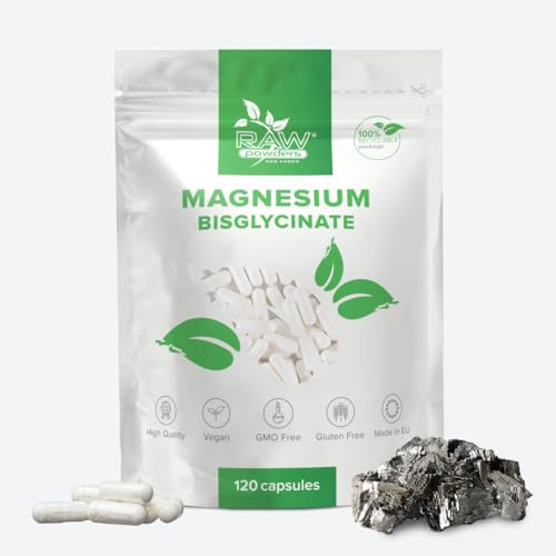 Magnesium Bisglycinate (Glycinate) 1000mg, 120 Kapslar – Stöd för muskelfunktion, nerver och sömn – Rena ingredienser, GMO- och glutenfria, GMP-certifierat kosttillskott från Raw Powders