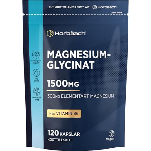 Magnesiumglycinat Tabletter 1500mg | 120 Veganska Tabletter | 300 mg Elementärt Magnesium | Hög Dos | Magnesium Glycinate Supplement | Horbaach