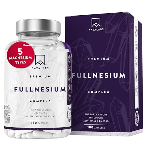 Magnesiumtillskott [425 mg elementärt magnesium] - 180 Kapslar - med Malat, Citrat, Kelaterat Bisglycinat, Taurat & Oxid - Hög Styrka & Absorbering - För energi, muskler och ben - Veganskt
