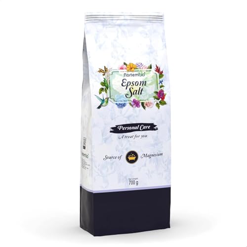Nortembio Epsom salt 700 g. Koncentrerad källa till naturlig magnesium. 100 % rent badsalt, inga tillsatser. Muskelavslappning och god sömn. E-bok ingår
