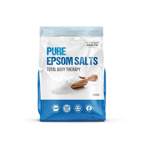 Pure Epsom Salts 10kg, Total Body Therapy, 100% Pure Premium Quality Magnesium Sulphate Traditional Bath Soak, Fine 1.4mm Easily Dissolvable Grain Size, Vegan Friendly by The Intelligent Health