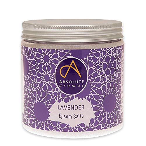 Absolute Aromas Lavendelinfunderade Epsom badsalt 575 g – magnesiumsulfat – avkopplande salter för badet – blötlägg och slappna av muskler och fötter