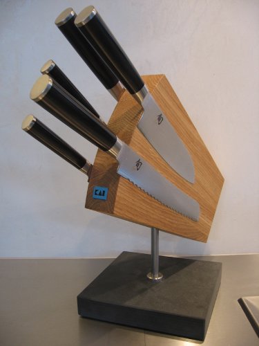 Kai SET magnet-knivblock DM-0794SB + 5 stycken Kai damastkniv