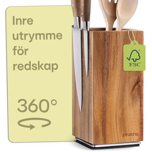 Praknu Knivblock Magnetic 360° Roterbar utan Knivar - FSC® Acaciaträ med Plats för Köksredskap - Stark magnet på båda sidor - Halkfri