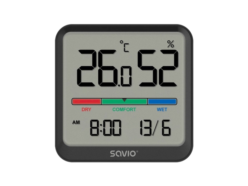 Temperatur- Och Luftfuktighetsgivare, För Inomhusbruk, Lcd-Skärm, Klocka, Datum, Handtag Med Magnet, Ct-01/B Svart