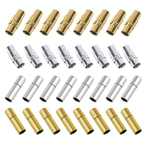 Zzcy 32 st magnetarmband, 4 mm, magnetiskt lås, armband, för smycken, snoddspetsar för smycken, med läderhalsband, två modeller guld och silver