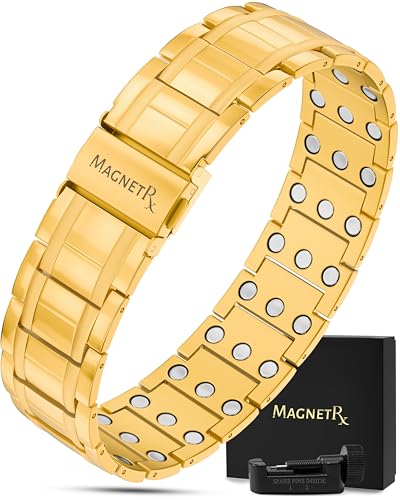MagnetRX® 3X Styrka Magnetarmband för Män – Effektivt Titanarmband med Magnet – Justerbar Längd, Viklås, Storleksverktyg och Presentask (Guld)
