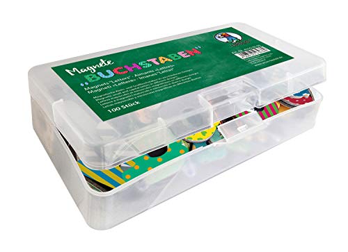 Ursus 43100099 – Magnetbokstäver, 100 stycken i en plastburk, i olika utföranden och storlekar från 1,5–4,4 cm, med små och stora bokstäver, perfekt som present till skolstart