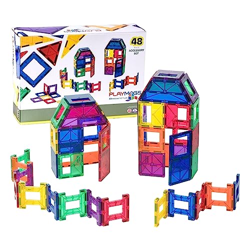 Playmags Originalfärgade magnetiska kakeluppsättning, starkaste magneter Byggstenar för barn, kreativitet och utbildningsbyggnadsleksaker för barn, stamgodkänd (magnetiskt lekhus)