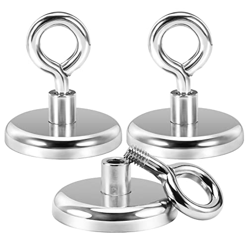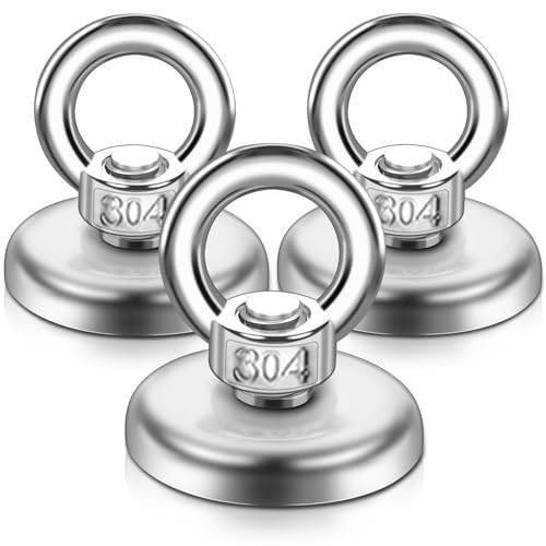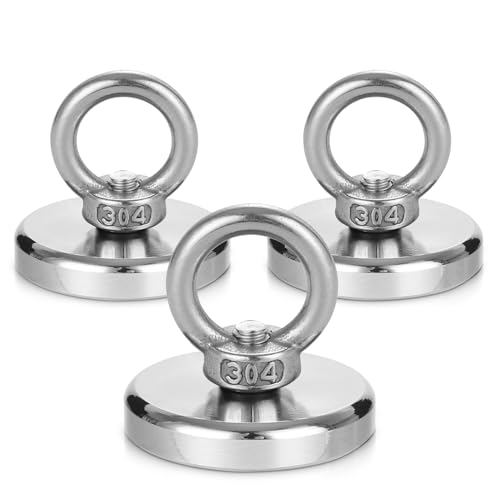 Toaren stor 50 kg magneter, stark, 42 mm diameter, neodymmagnet, 3 stycken, superstark fiskmagnet, extra stark magnetfiske med öglemagneter för magnetisk fiske, dammutning, hem, sjöar, gräsmatta