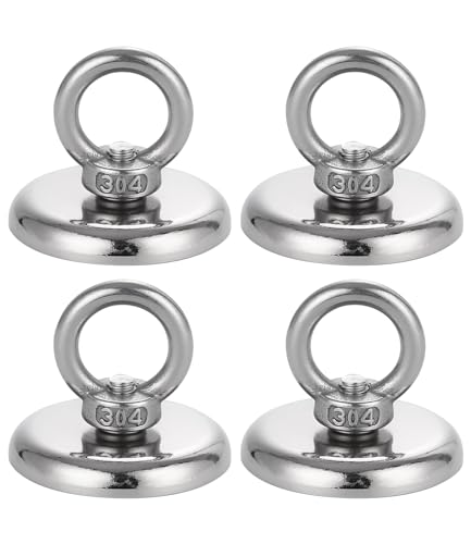 TIDEVAN Fiskemagneter,42mm Mycket Starka Magneter 4 stycken Neodym-Magneter med ögla 50kg Superstark Neodym öljettmagnet Magnetfiske med Lyftringar och Skruvar Perfekt för Magnetfiske för Hem Verkstad