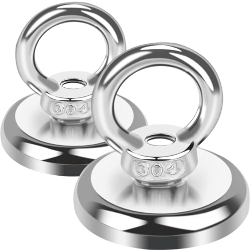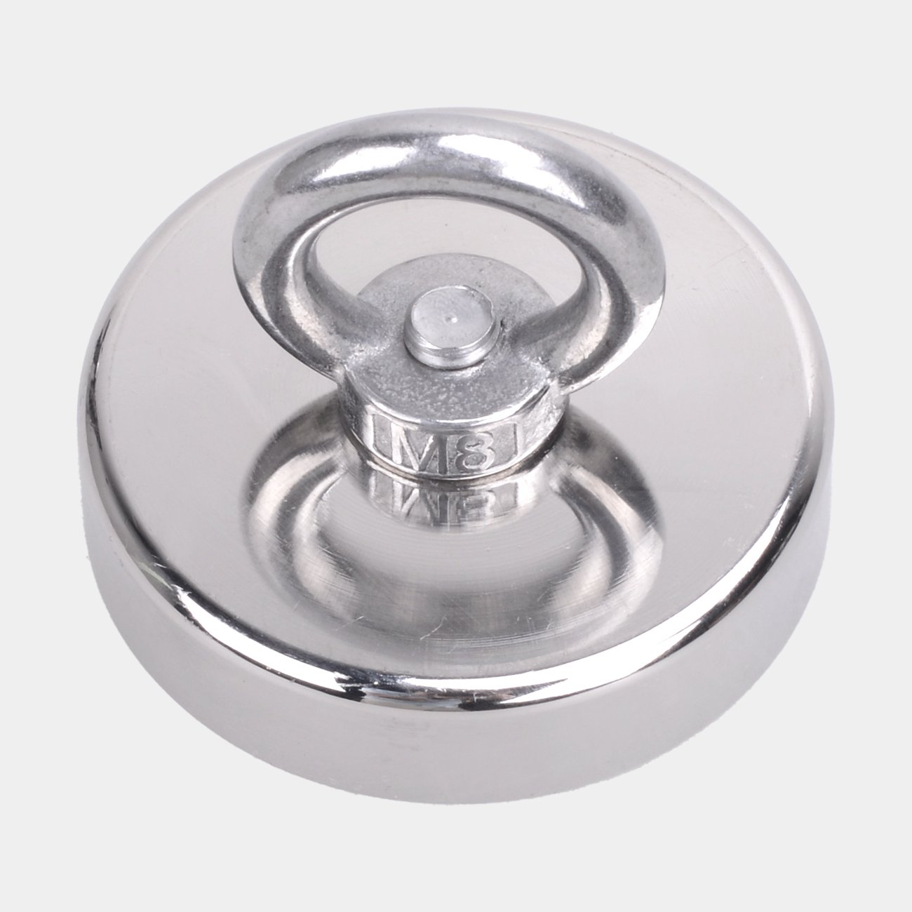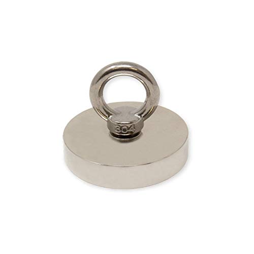 N42 Neodymmagnet med 2 x M8-öglor för magnetfiske, återhämtning och skattjakt – 48 mm diameter x 18 mm – 80 kg drag