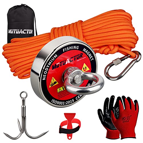 Mutuactor Fiskemagnetsats med grip, 180 kg, N52 kraftfull hämtningsmagnet med 20 m (66 fot) tåligt rep, för magnetfiske och magnetisk undervattenshämtning...